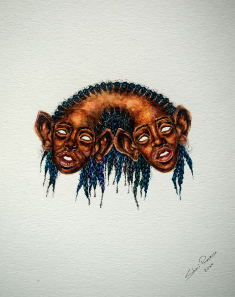 The “Are you offended yet?” series uses Black caricature and Eve’s grotesque face masks to disrespect the classical representation of whiteness, out of anger of the destruction of murals and billboards advocating that Black lives matter. The disrespect becomes an entry point to question the use of racist imagery and slurs to attack people of a different ethnicity.